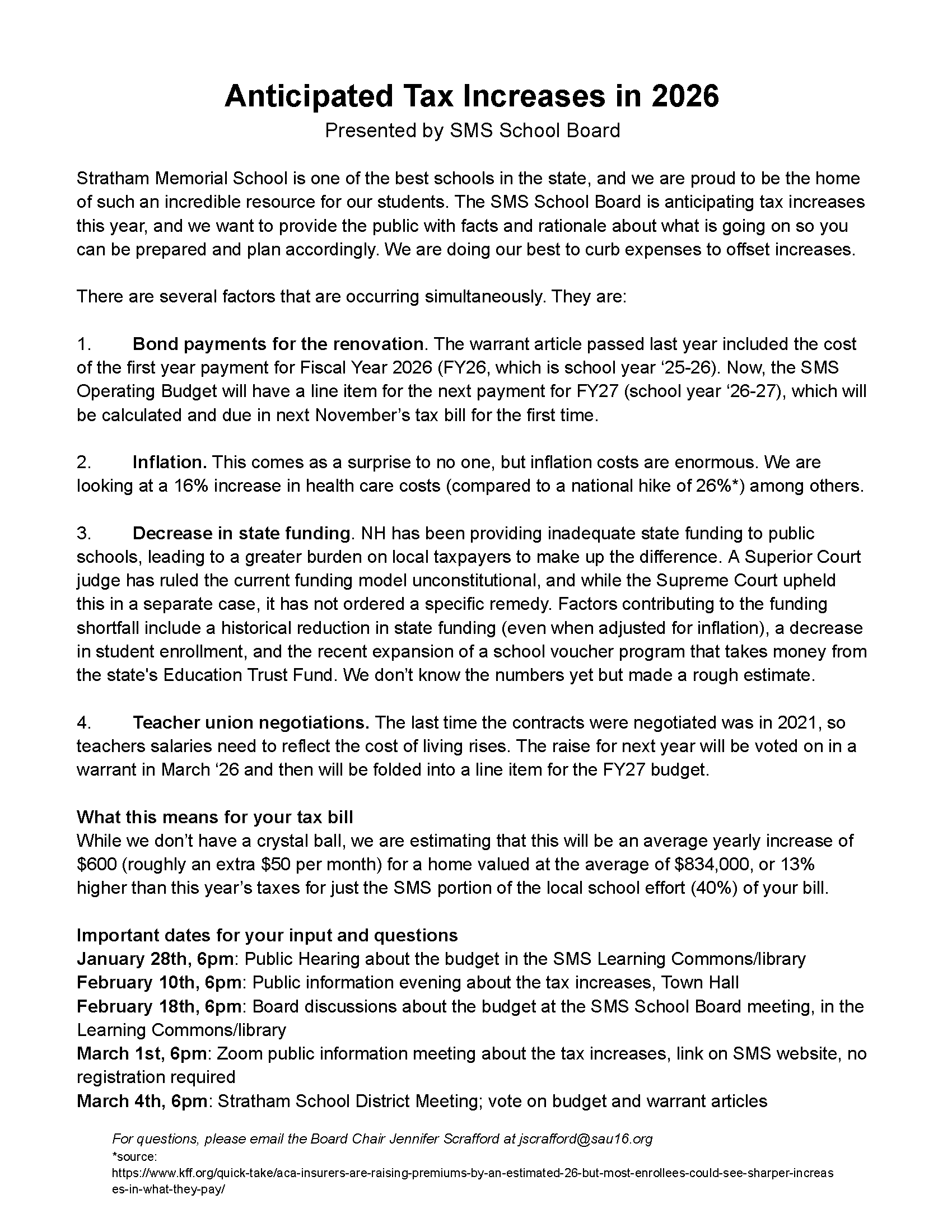 Please read below for news and notes from the Town of Stratham. In this edition:
