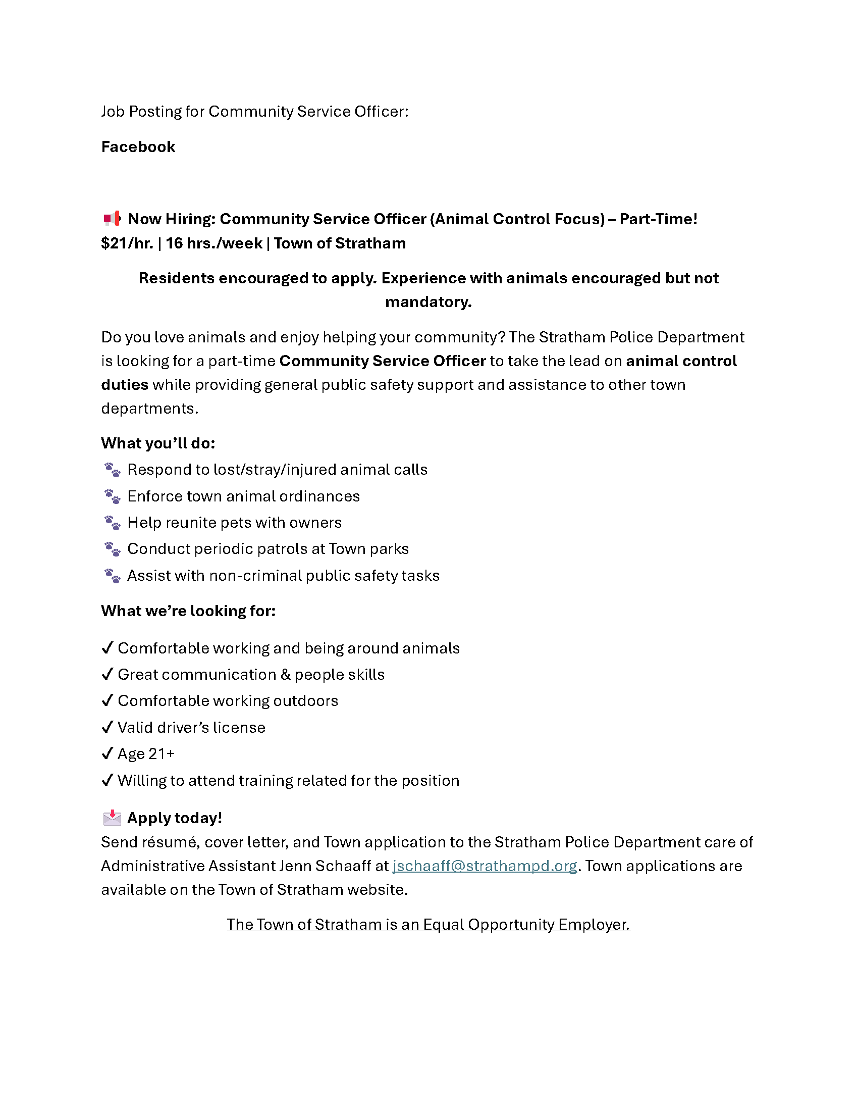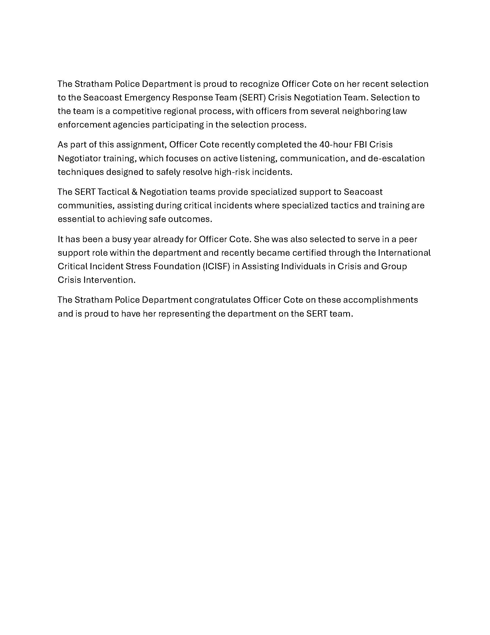 NEWS FROM STRATHAM POLICE DEPARTMENT